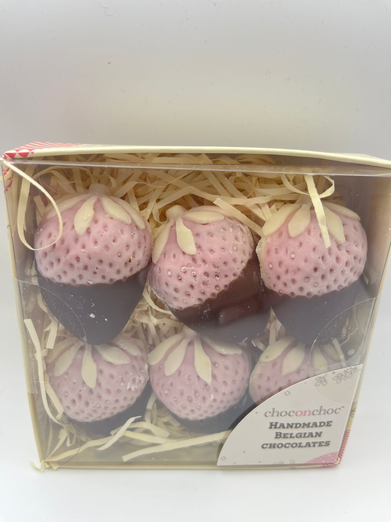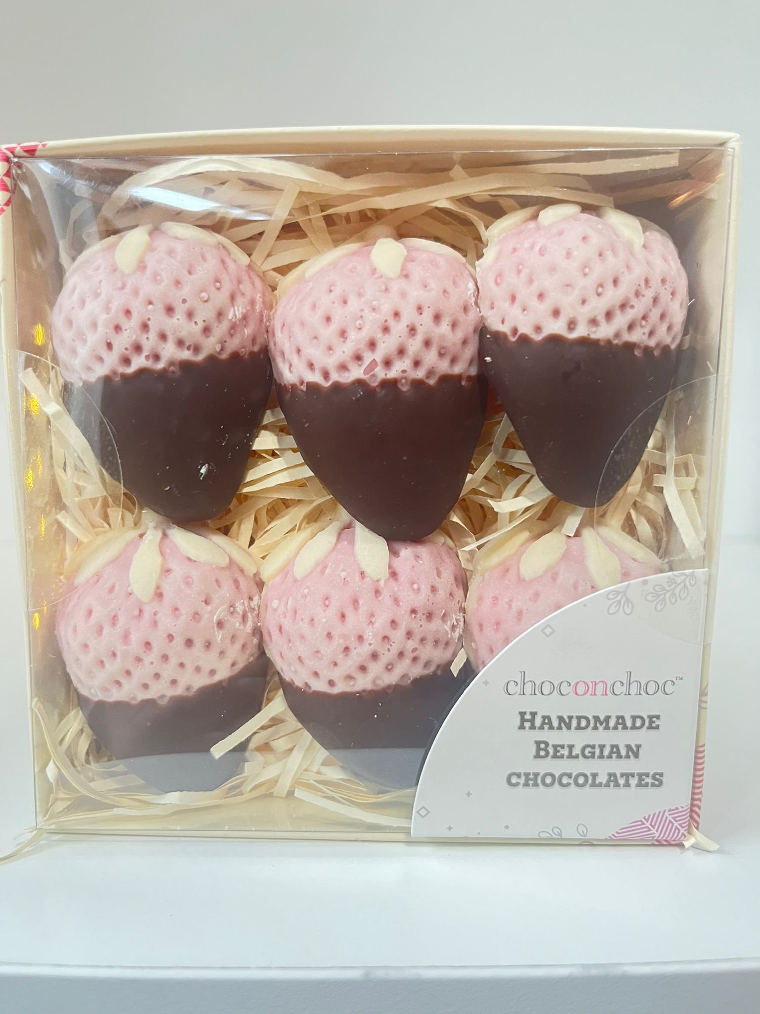 Delight in beautifully crafted Belgian chocolates shaped like strawberries. Handmade with rich, smooth chocolate, these elegant treats are perfect for gifting or savoring anytime.