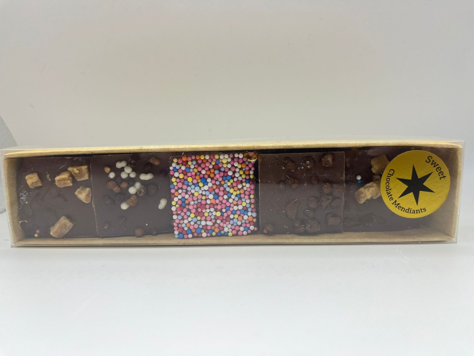 Delight in these handcrafted Belgian milk chocolate discs, each topped with a colorful variety of toppings. Perfect for sharing or treating yourself to a playful, gourmet chocolate experience.