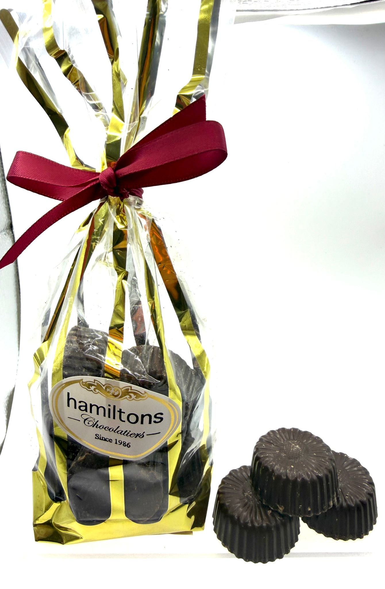 Indulge in rich dark chocolate shells filled with a smooth mandarin infused cream centre. The deep cocoa notes perfectly balance the bright citrus flavour, creating a luxurious and refreshing finish. Handmade by Hamiltons Chocolatiers, these elegant treats are ideal for gifting or enjoying as a sophisticated after dinner indulgence.
