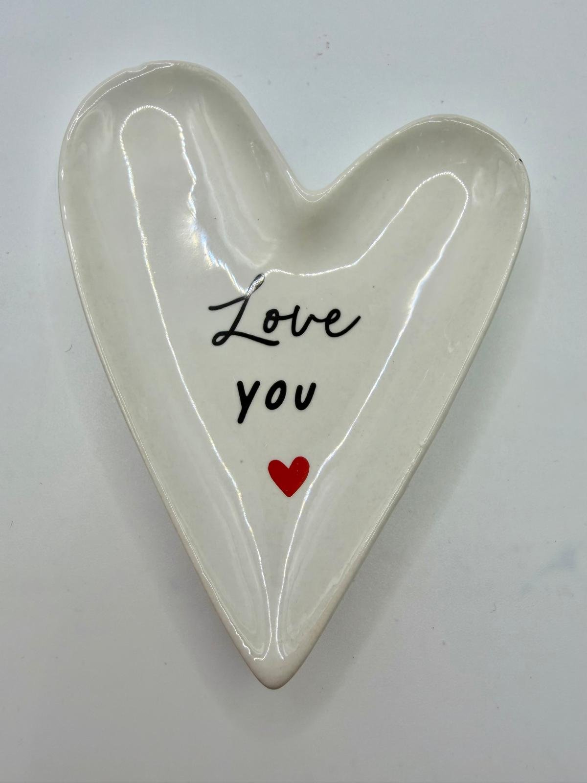 A beautifully simple heart-shaped trinket dish featuring the words “Love You” and a delicate red heart detail. Perfect for holding rings, earrings, or small keepsakes, this charming dish makes a thoughtful gift for someone special. Ideal for Valentine’s Day, anniversaries, or as a meaningful everyday reminder of love.