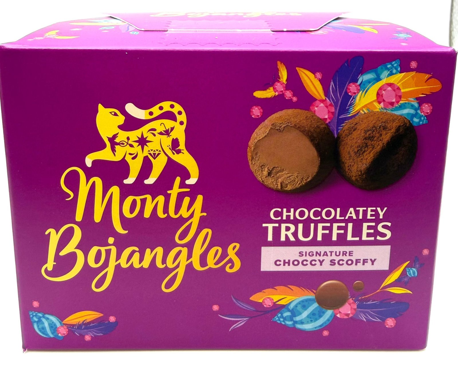 Treat yourself to the irresistibly smooth Monty Bojangles Chocolatey Truffles – Signature Choccy Scoffy. These indulgent cocoa dusted truffles are crafted for true chocolate lovers, delivering a luxuriously creamy centre that melts effortlessly with every bite.