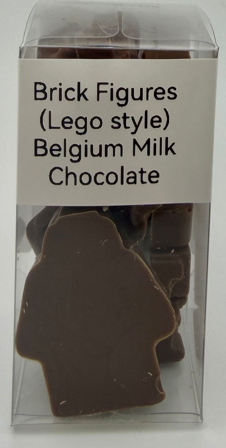 A fun and playful chocolate gift inspired by classic brick style figures, crafted from smooth Belgian milk chocolate.