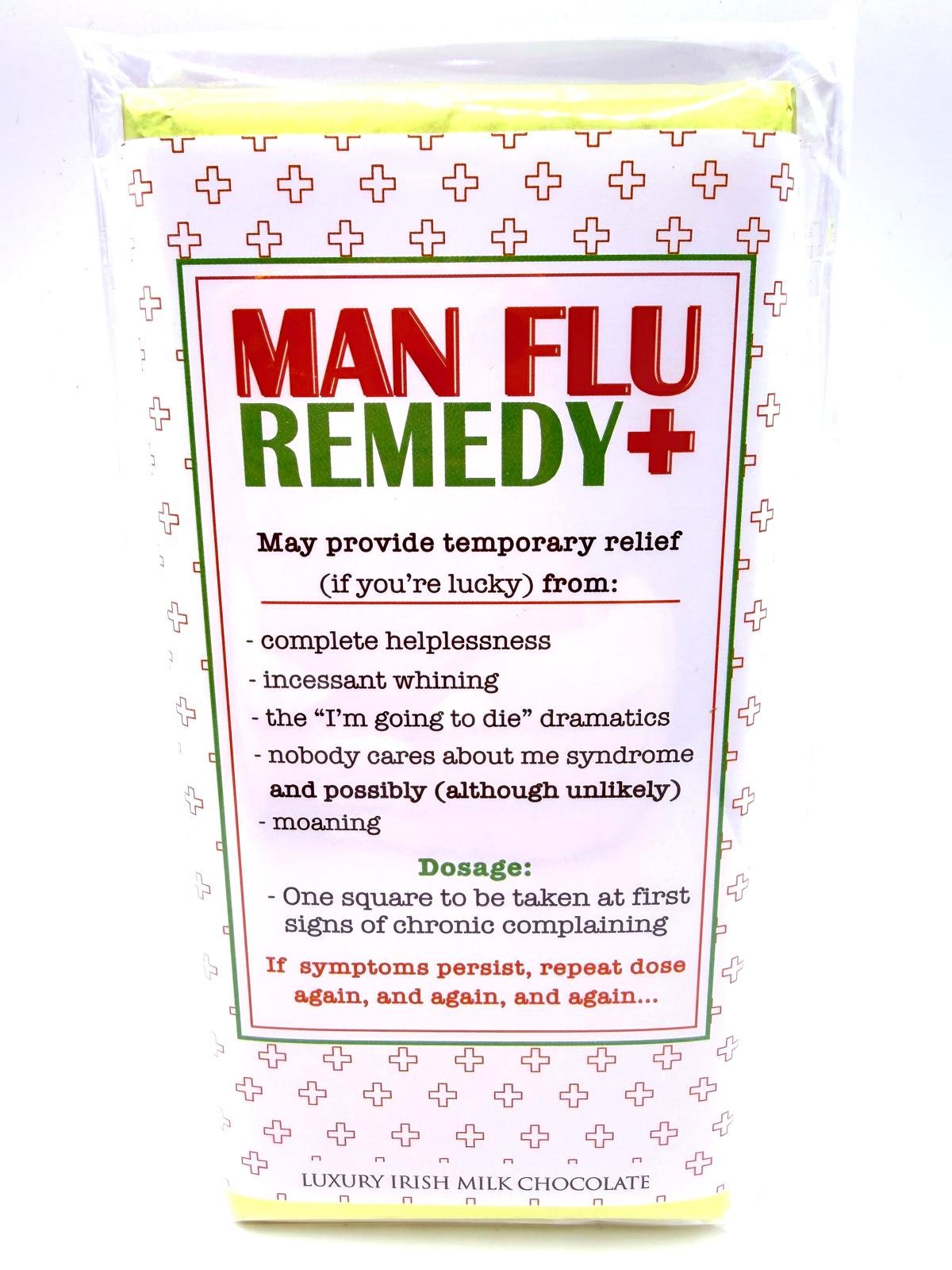 The ultimate cure (or at least distraction) for the dreaded man flu. This Sentiments Bar is made with smooth, creamy luxury Irish milk chocolate and wrapped in a hilarious Man Flu Remedy design that doesn’t take itself too seriously.