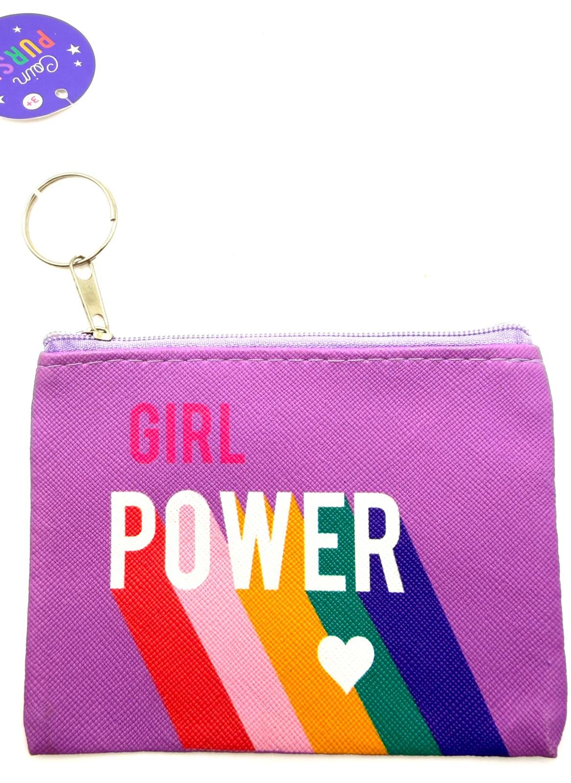 Bold, colourful and empowering, this Girl Power Small Zip Purse is a fun and practical accessory with a positive message. Featuring vibrant rainbow stripes and the slogan Girl Power on a bright purple background, it’s perfect for confident little trendsetters.