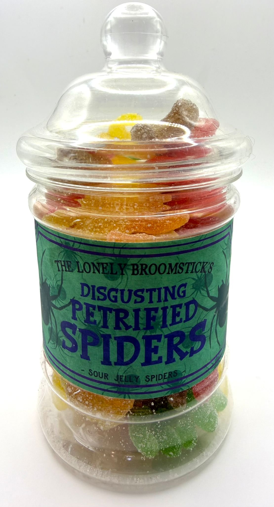 Dare to try The Lonely Broomstick’s Disgusting Petrified Spiders – a spooky jar filled with sour jelly spiders that are frightfully fun and deliciously tangy.